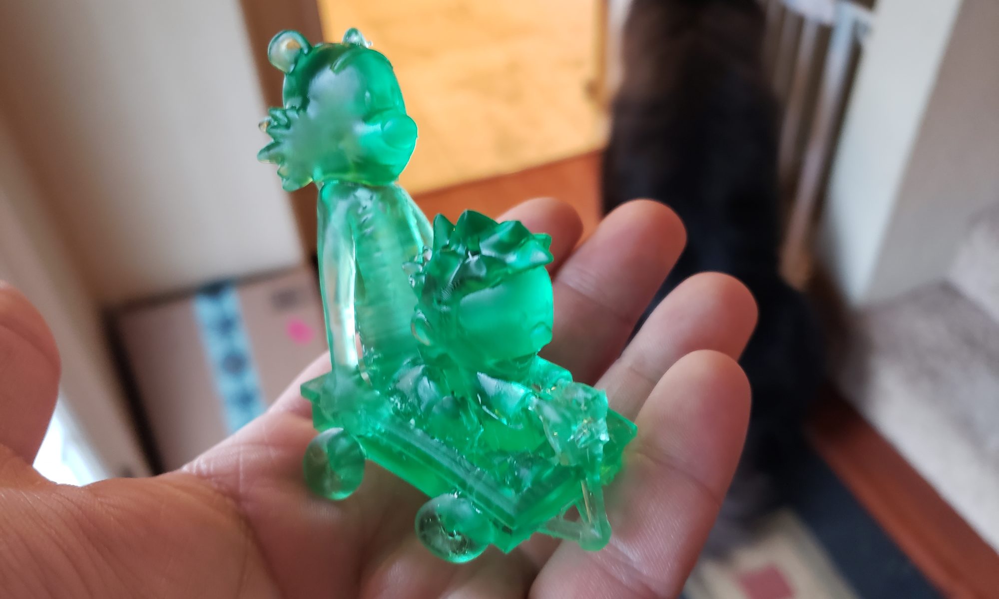 Well, I can tell you that didn’t go well. It was far too thick and the printer didn’t like it. After editing the 3D printer’s program to see if I could make it work, I found the cured photopolymer wasn’t sticking to the platform and just ended up making a mess.