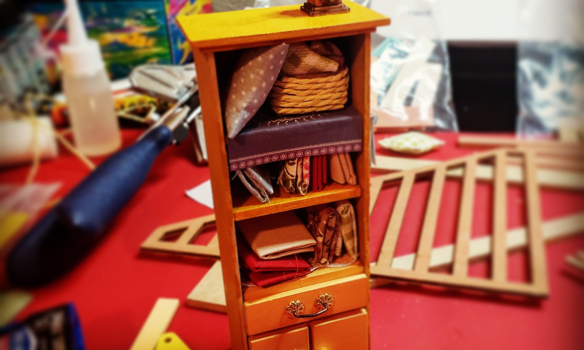I finally broke out some of my miniature kits that have been collecting dust. The one I plucked out of the stack was a miniature craft room which is just crammed to the gill with stuff. Why clean my craft room when I can spend time creating a whole other messy room right on my desk?